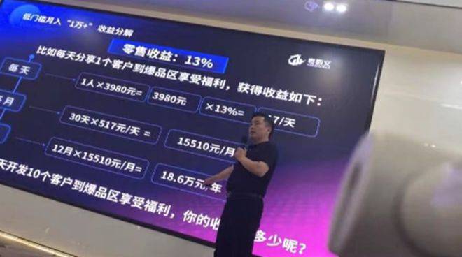 如此“打鸡血式”推介方式让现场的听众们兴奋地高声呼叫,现场气氛鼎沸,如此“高收入”的背后是否触及国家“红线”?