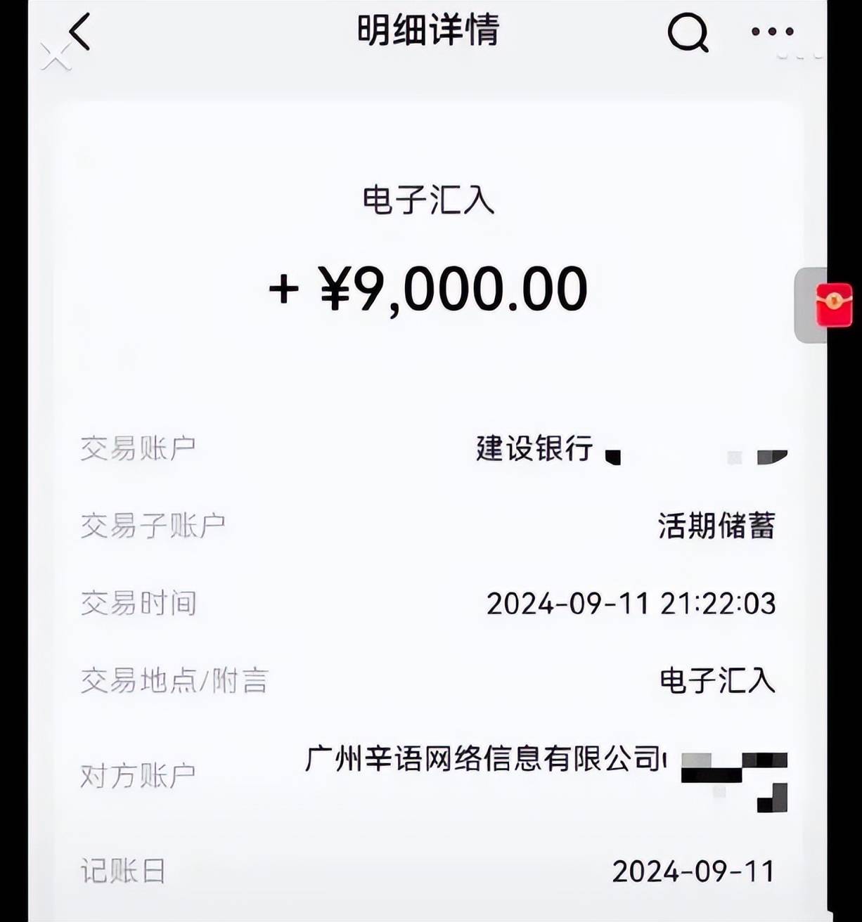 此后,IP为山东、广东、河南等地的不少网友在辛巴账号视频留言区晒出截图,称已经收到相关款项,交易时间为当晚9点多,交易金额9000元,付款方为广州辛语网络信息有限公司,该公司是辛选集团成员。