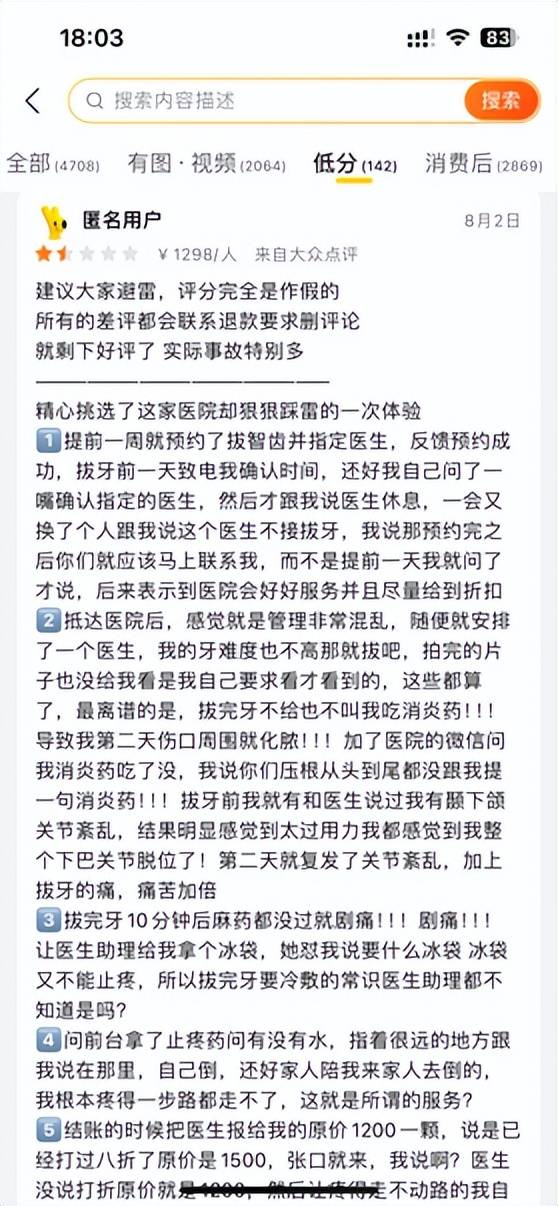 在美团、大众点评平台,“服务差”、“大夫不好”、“体验一般”、“服务一般”等是机构绕不开的负面评价标签。