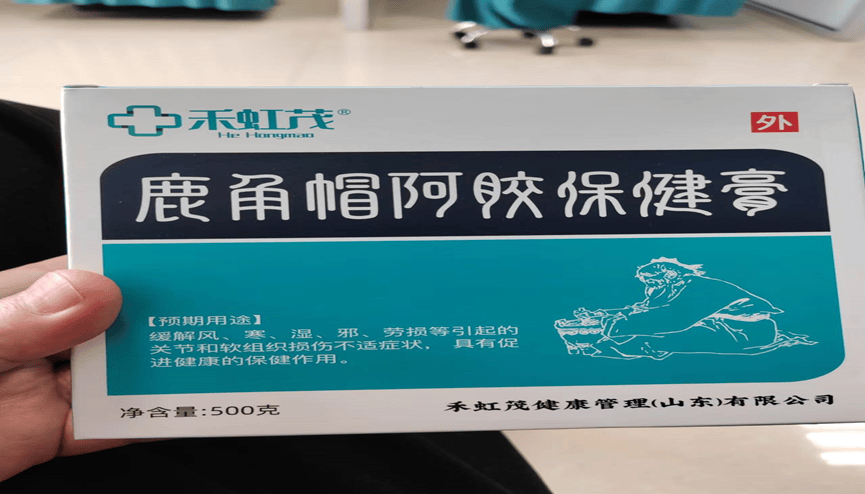同样在禾虹茂公司另外一款作为保健用品的“鹿角帽阿胶保健膏”,其外包装上的<预期用途>标注为缓解风、寒、湿、邪、劳损等引起的关节和软组织损伤不适症状,具有促进健康的保健作用。但销售人员却声称可以治疗颈椎病,腰间盘,肩周炎,脉管炎,股骨头坏死,乳腺增生,宫寒,痛风等等。