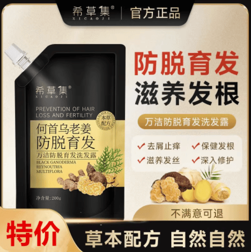 值得关注的是,希草集牌万洁防脱育发洗发露这个产品名。