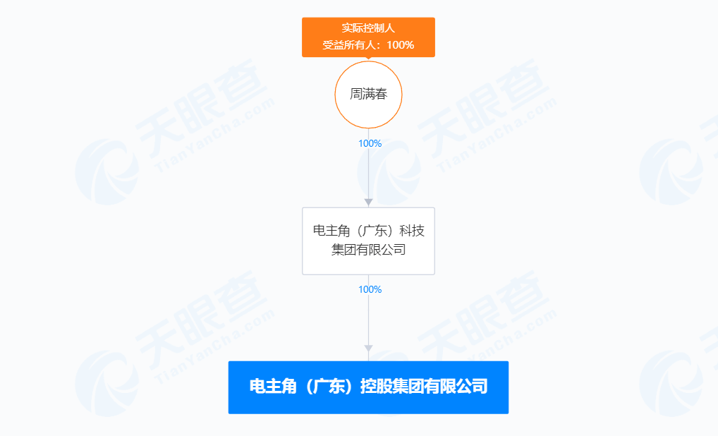 另外记者试图查询更多与电主角法定代表人和最终受益人周满春的更多信息,但天眼查显示,周满春仅任职电主角(广东)控股集团有限公司和电主角(广东)科技集团有限公司。