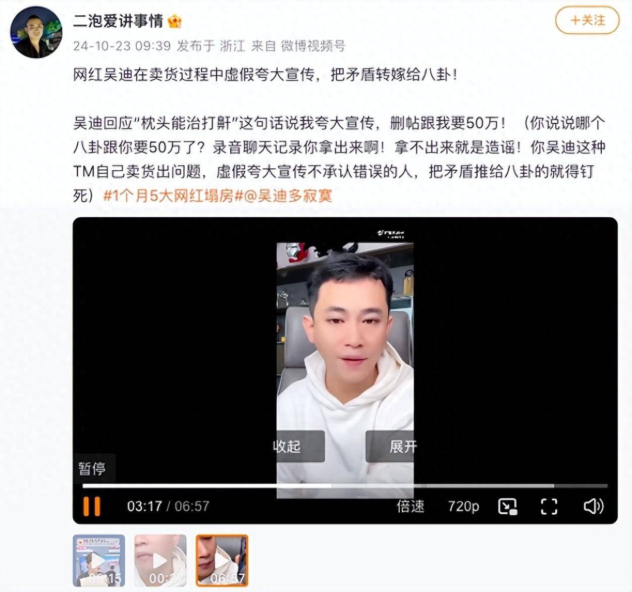 “吴迪”涉虚假宣传:称被打假博主敲诈50万 涉事博主已报案