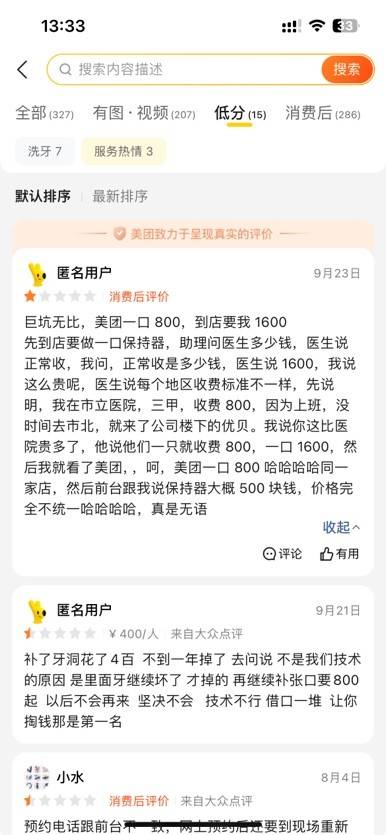 以优贝口腔青岛黄岛旗舰店为例,“巨坑无比,美团一口800,到店要我1600”。