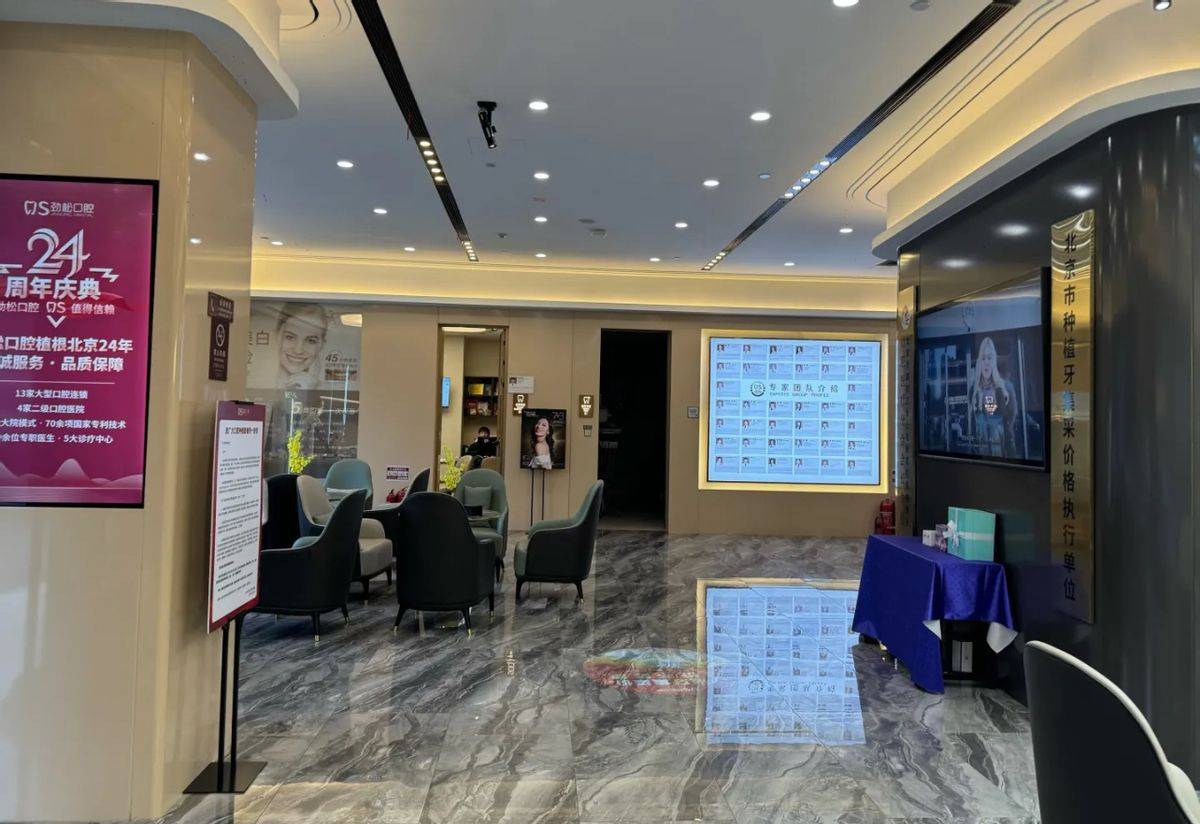 “从去年4月1日开始,这边实行中央集采的补贴活动,单颗种植牙可补贴50%-80%。”劲松口腔销售人员建议记者先前往机构免费检查,再根据整体方案计算能补贴多少。“种植牙活动的力度很大。”当记者询问具体打几折时,销售人员表示,具体折扣不清楚,要看整体方案及费用预算。