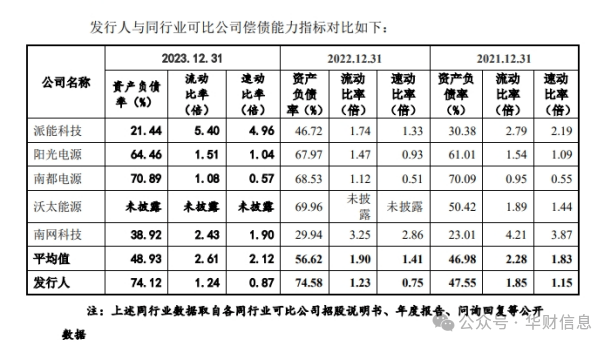 报告期内,海博思创资产负债率分别为 47.55%、74.58%和 74.12%,流动比率分别为 1.85、1.23 和 1.24,速动比率分别为 1.15、0.75 和 0.87,各指标数据较差且弱于同行业可比公司偿债能力的平均表现。(下图)