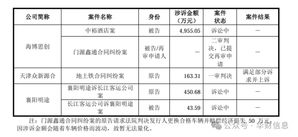 此外,海博思创及其子公司最近三年有多项作为被告的诉讼案件:中裕酒店案、门源鑫通合同纠纷案、襄阳明途案。(下图)