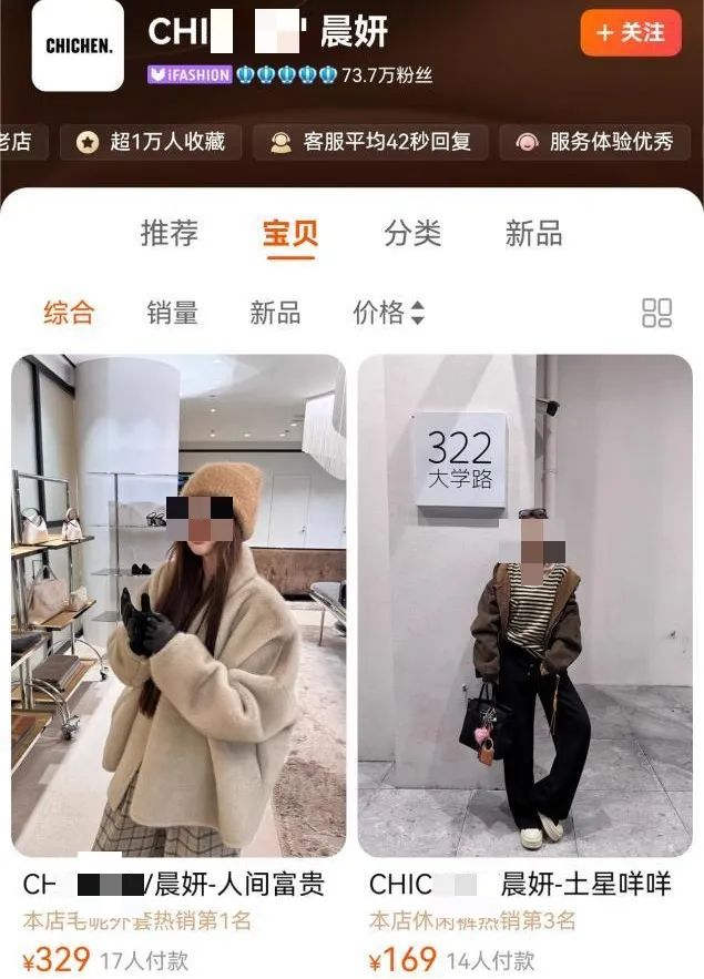 据悉,目前,晨妍在抖音、淘宝平台均开设了自己的店铺“CHICHEN晨妍”,主要以销售服装为主,淘宝店铺粉丝量超73万。
