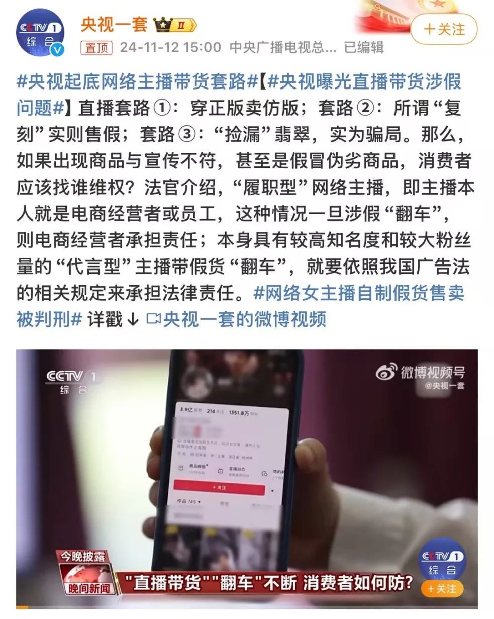 又一千万级主播要凉了?央视曝光三位网络主播直播带货套路
