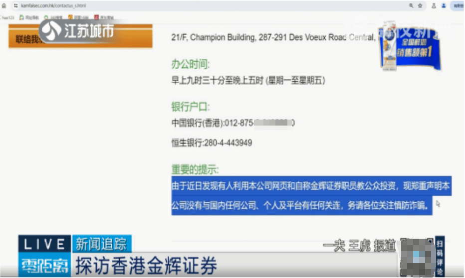 这里是金辉证券有限公司的办公场所,他们也知道联众投,也早就向香港的证监会报案,两者没有任何关系。