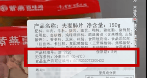 根据博主视频中所展示样本的食品生产许可证编号可知,该批次夫妻肺片产品来自连云港紫川食品有限公司,由上市公司紫燕食品(603057.SH)对其间接全资控股。