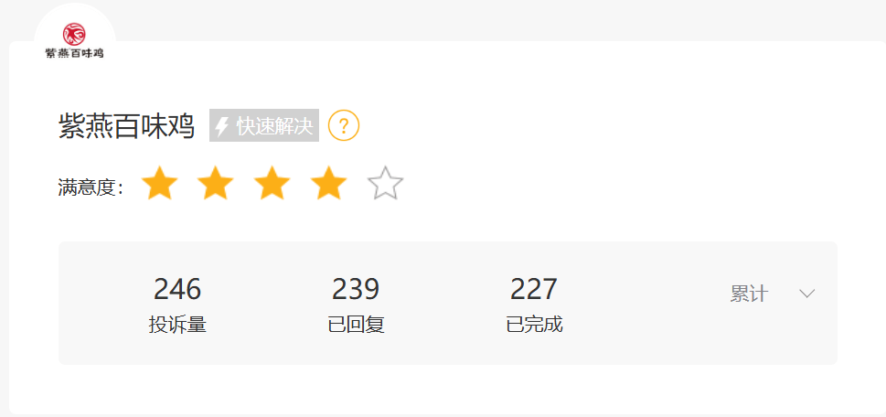 图:黑猫投诉平台上紫燕百味鸡投诉量