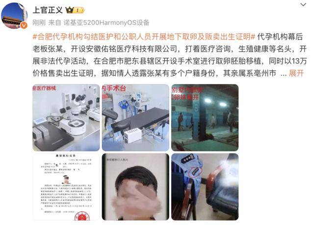 12月13日下午2点55分,打拐志愿者上官正义在其社交媒体账号发布举报信息,称安徽合肥一代孕机构勾结医护和公职人员开展地下取卵及胚胎培育,并贩卖出生证明移植。