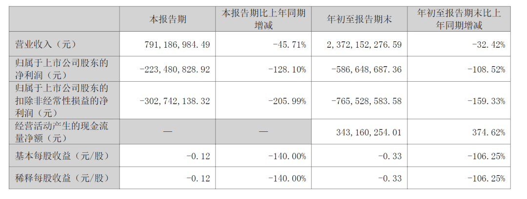 前三季度净亏5.87亿元