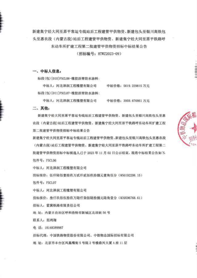 同时,通过招标采购的喷涂橡胶沥青防水涂料为何质量不合格?蒙冀铁路有限责任公司是否早已发现了河北泽润工程橡塑有限公司提供了不合格材料?又为何继续使用不合格的防水涂料?中国交通广播记者多次致电蒙冀铁路有限责任公司了解相关情况,其物资部的一位工作人员极不耐烦地向记者表示,没听说过此事,然后就匆匆挂断了电话。
