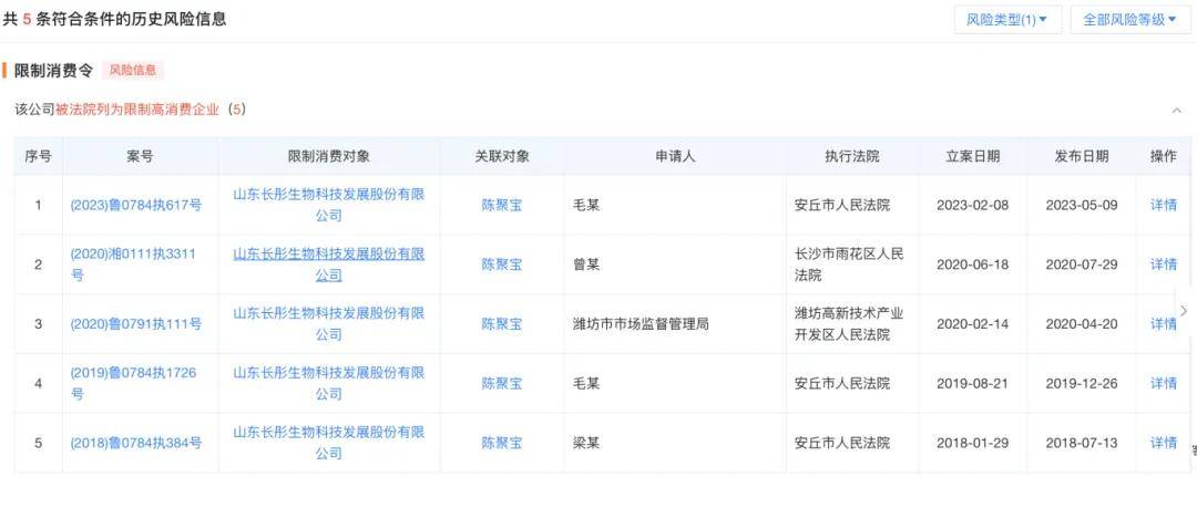 与此同时,实控人陈聚宝还因长彤生物涉及的多个诉讼被相关法院5次出具《限制消费令》。
