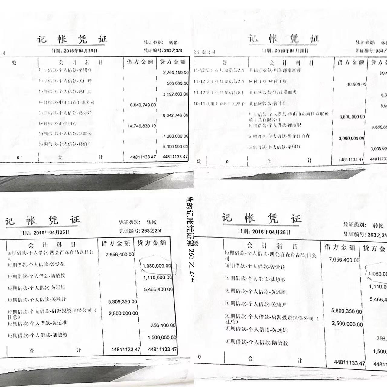 涉及7700多万的个人借款的财务凭证“制单人的姓名、打印时间”等内容均被剪掉,涉嫌造假