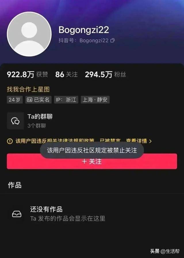 其中,网红柏公子粉丝近300万。其抖音账号显示该用户因违反相关规定,已被禁言、被禁止关注。小红书已经查无此人。微博账号也被封禁。