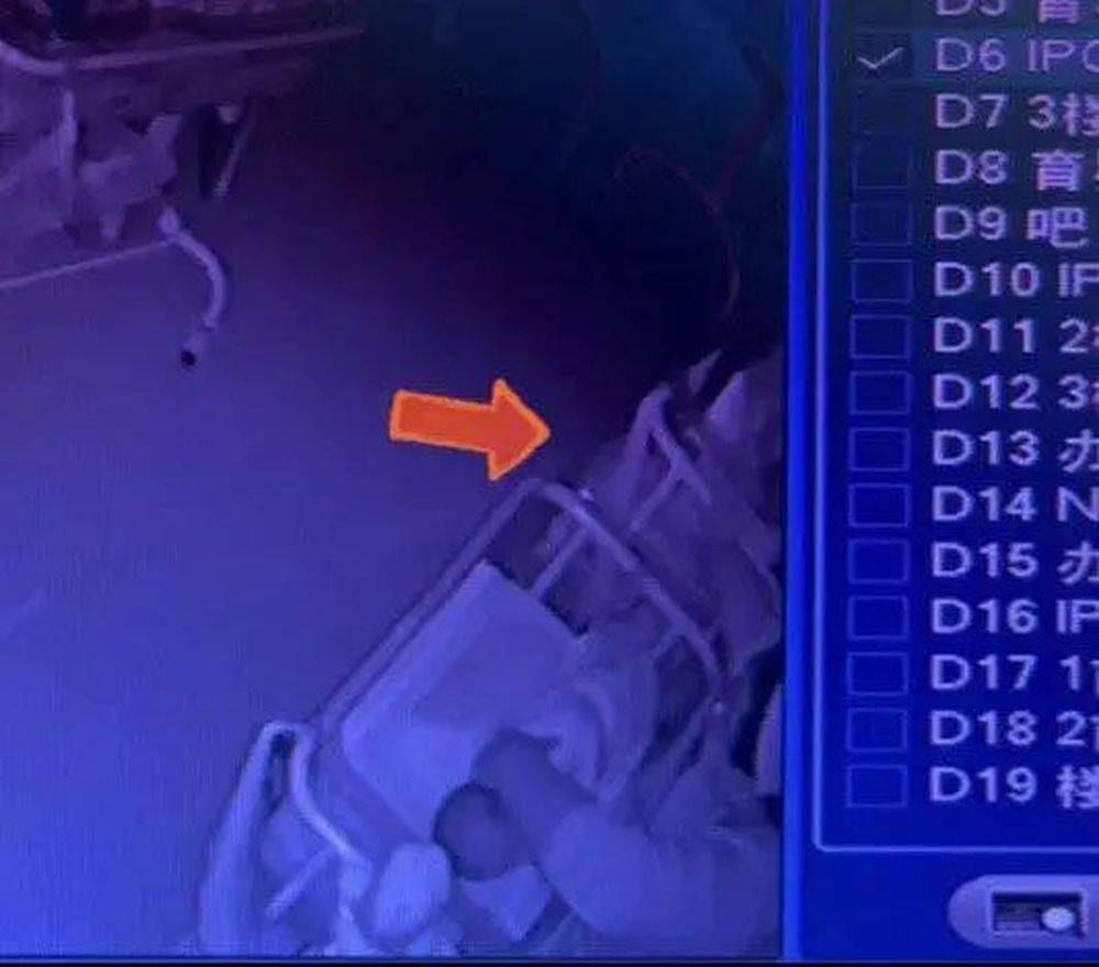龚女士提供的第一段视频显示,9月26日晚,龚女士宝宝处于监控盲区,但婴儿床有一个角落在监控内。凌晨2点,一名穿着护士服装的工作人员站在该角落旁,一边整理床单,一边查看登记本,中途多次拍打婴儿床上的婴儿。