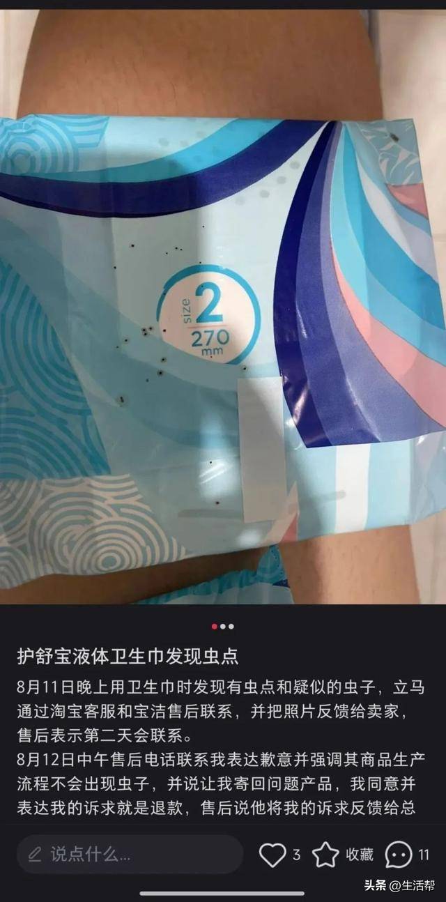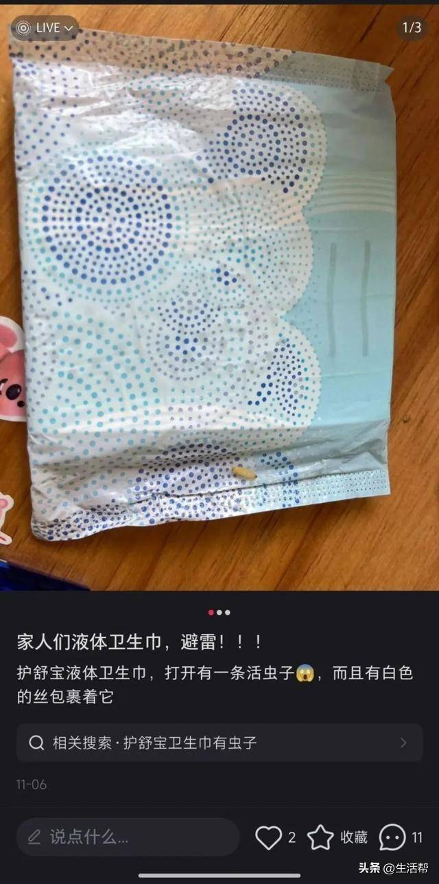 宝洁旗下护舒宝液体卫生巾钻出蠕动小虫?商家拒绝退一赔三