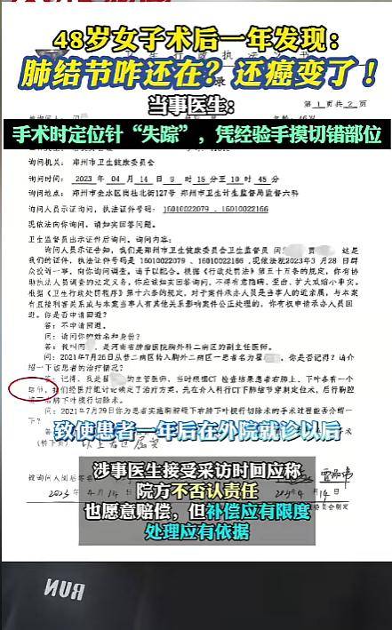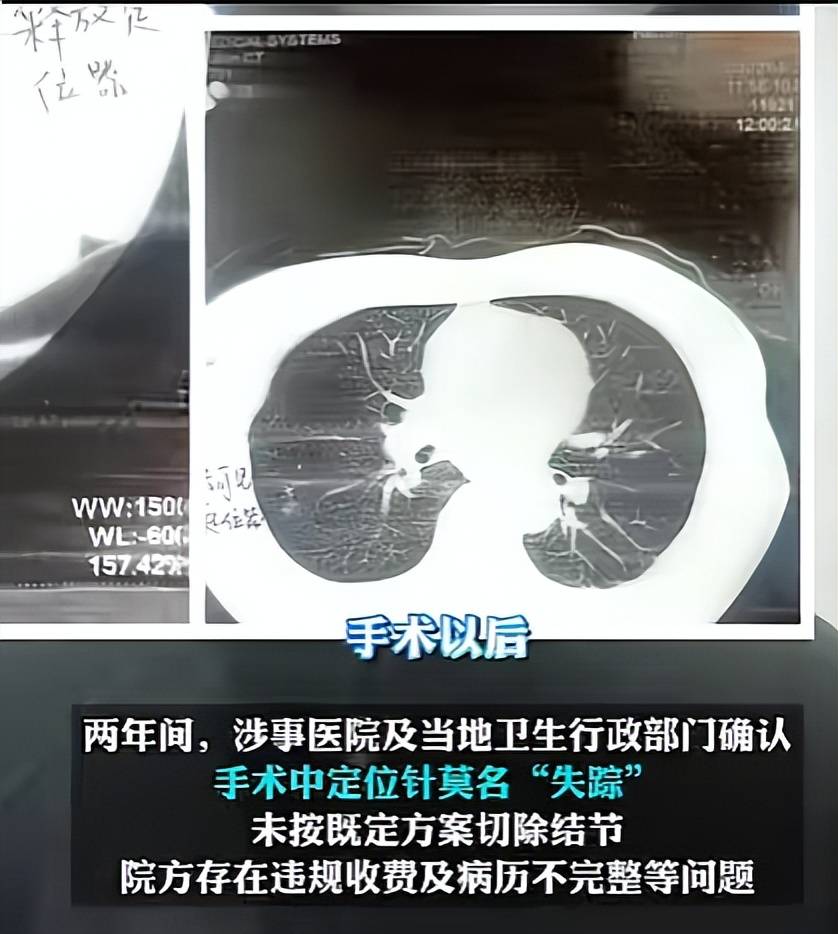 然而,问题就发生在手术过程中。据翟女士后来了解到,手术原定要借助术前植入的定位针准确找到结节位置,但在手术中,定位针却“失踪”了。