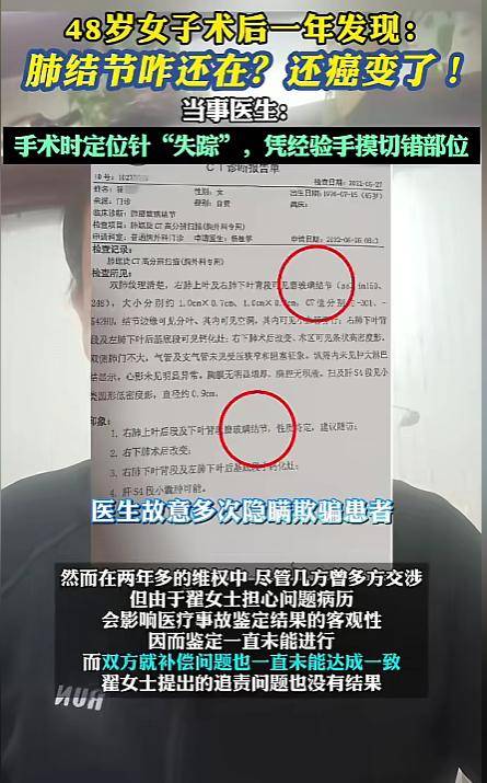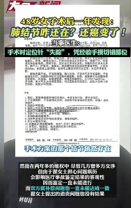 从一场手术,到定位针“失踪”、结节未切除,再到恶性肿瘤被确认,48岁的翟女士经历的不仅是身体上的折磨,更是一次又一次信任的崩塌。