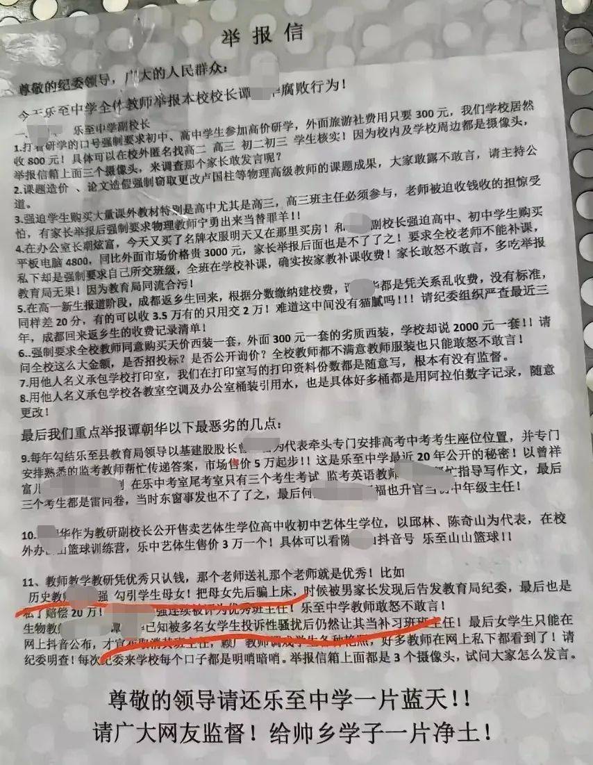 四川乐至中学全体教师联名举报谭姓副校长 涉嫌多项违纪行为