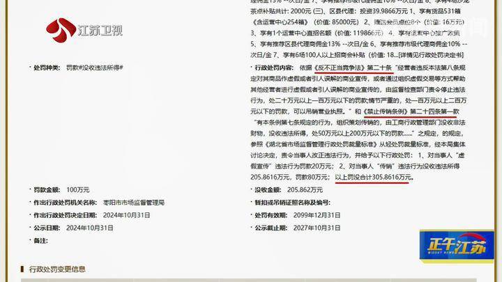 湖北襄阳枣阳市市场监管局法制科工作人员说:" 我们发现他们有传销行为,还有虚假宣传的行为,违反《反不正当竞争法》。另外,被处罚过之后,没有在当地继续经营了。"
