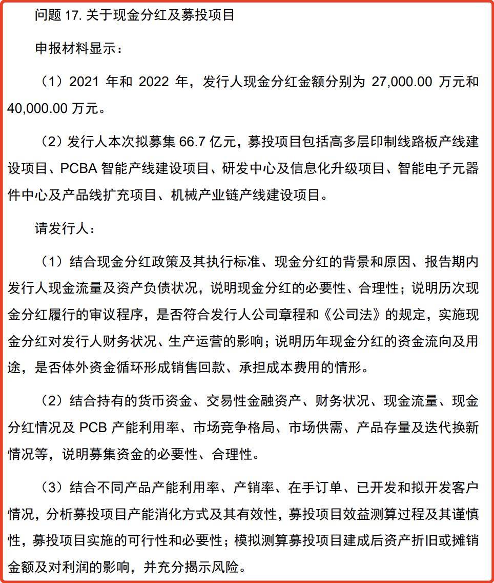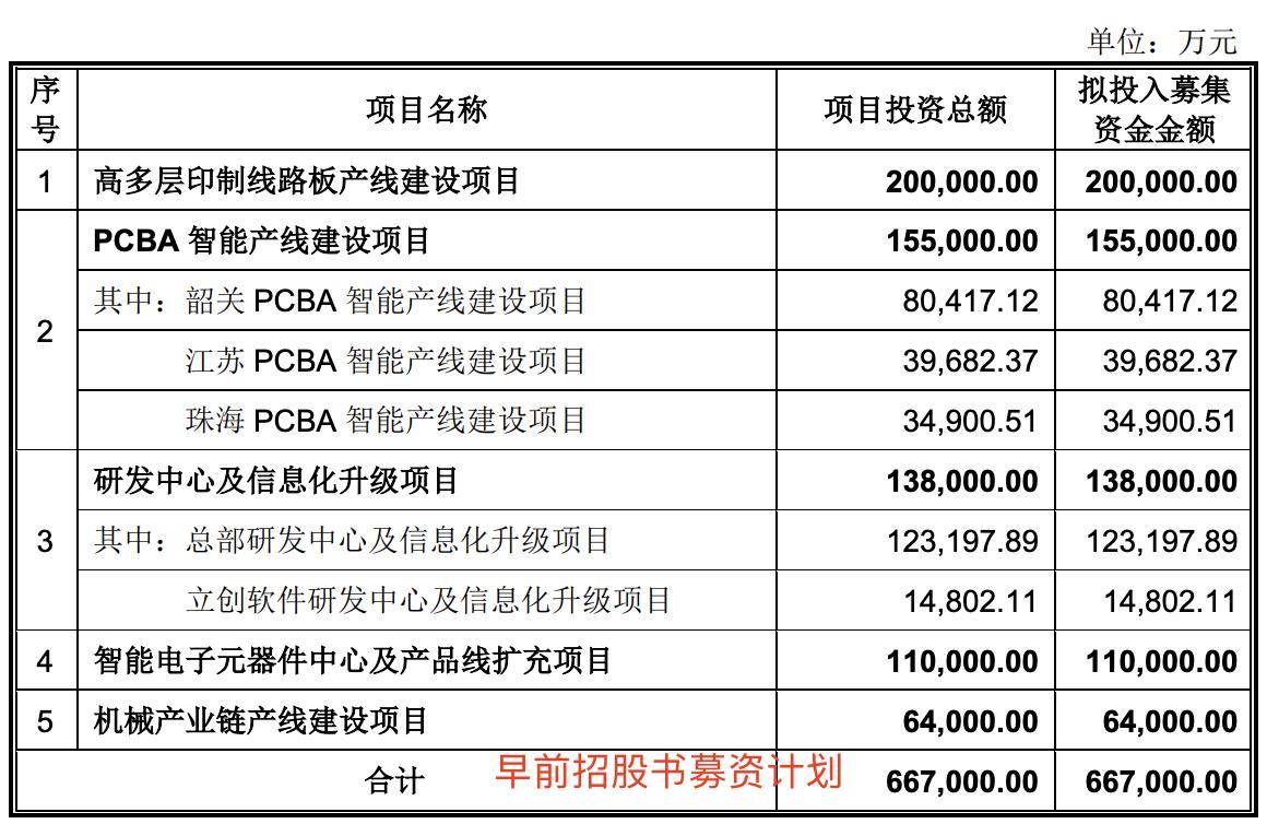 据贝多财经了解,嘉立创的首发申请于2023年6月获得受理,准备在深圳证券交易所主板上市。早前招股书显示,嘉立创原计划募资66.7亿元。但提交第一轮问询回复的同时,嘉立创则将拟募资金额调整为42亿元。