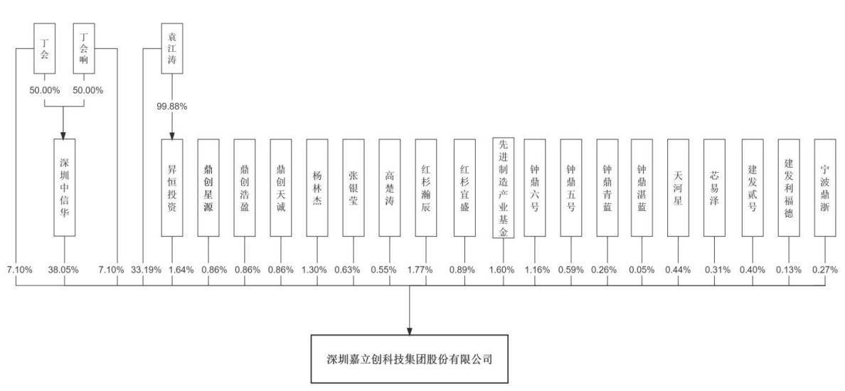其中,丁会及丁会响以其分别持股50%的深圳中信华认缴,剩余注册资本由其余股东按持股比例认缴,嘉立创的注册资本增加至3亿元。据贝多财经了解,丁会及丁会响为兄弟关系,丁会、丁会响和袁江涛为嘉立创的共同实际控制人。