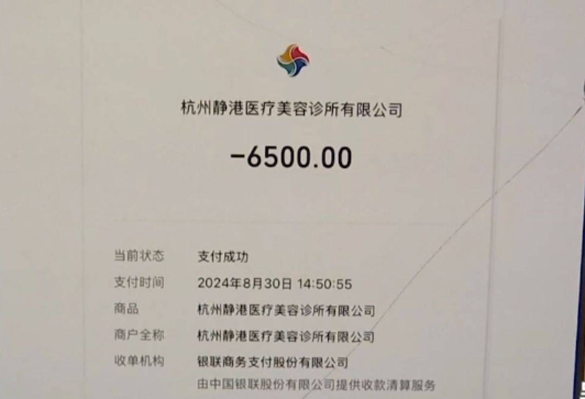 小杜希望美容诊所能退还一半治疗费。记者注意到,美容诊所的营业执照上,商户的名字是“杭州静港医疗美容诊所有限公司”。