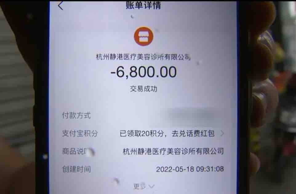 采访当天,小杜穿着一条长裙。她是一名服装模特,经朋友推荐,于5月14号来到杭州延安路的“静港医美”,并支付了五千块定金。