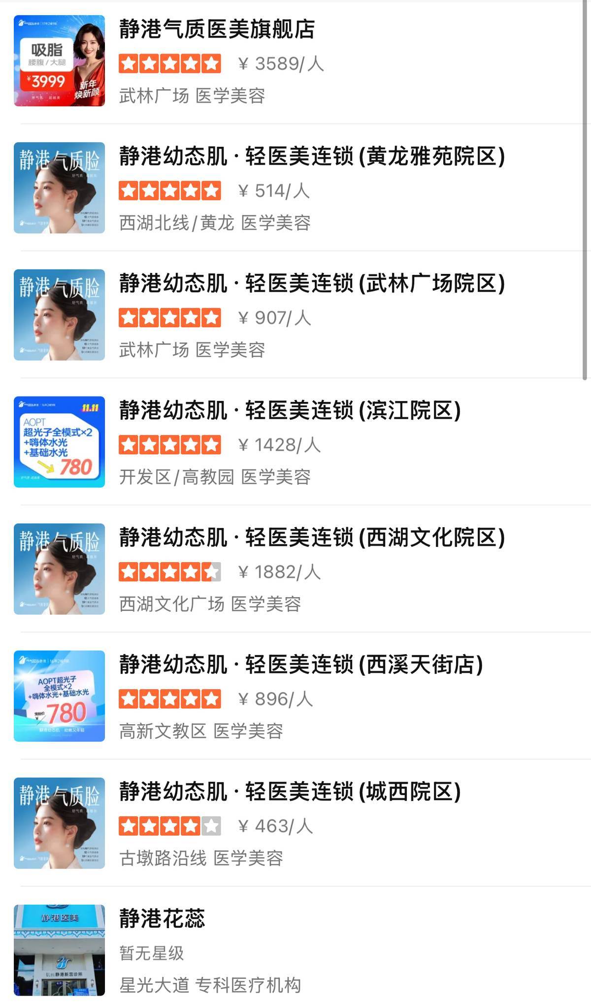 杭州静港医疗美容管理有限公司,成立于2017年,杭州珞珈投资有限公司旗下品牌,企业注册资本1000万人民币,该品牌医美店遍布杭州。