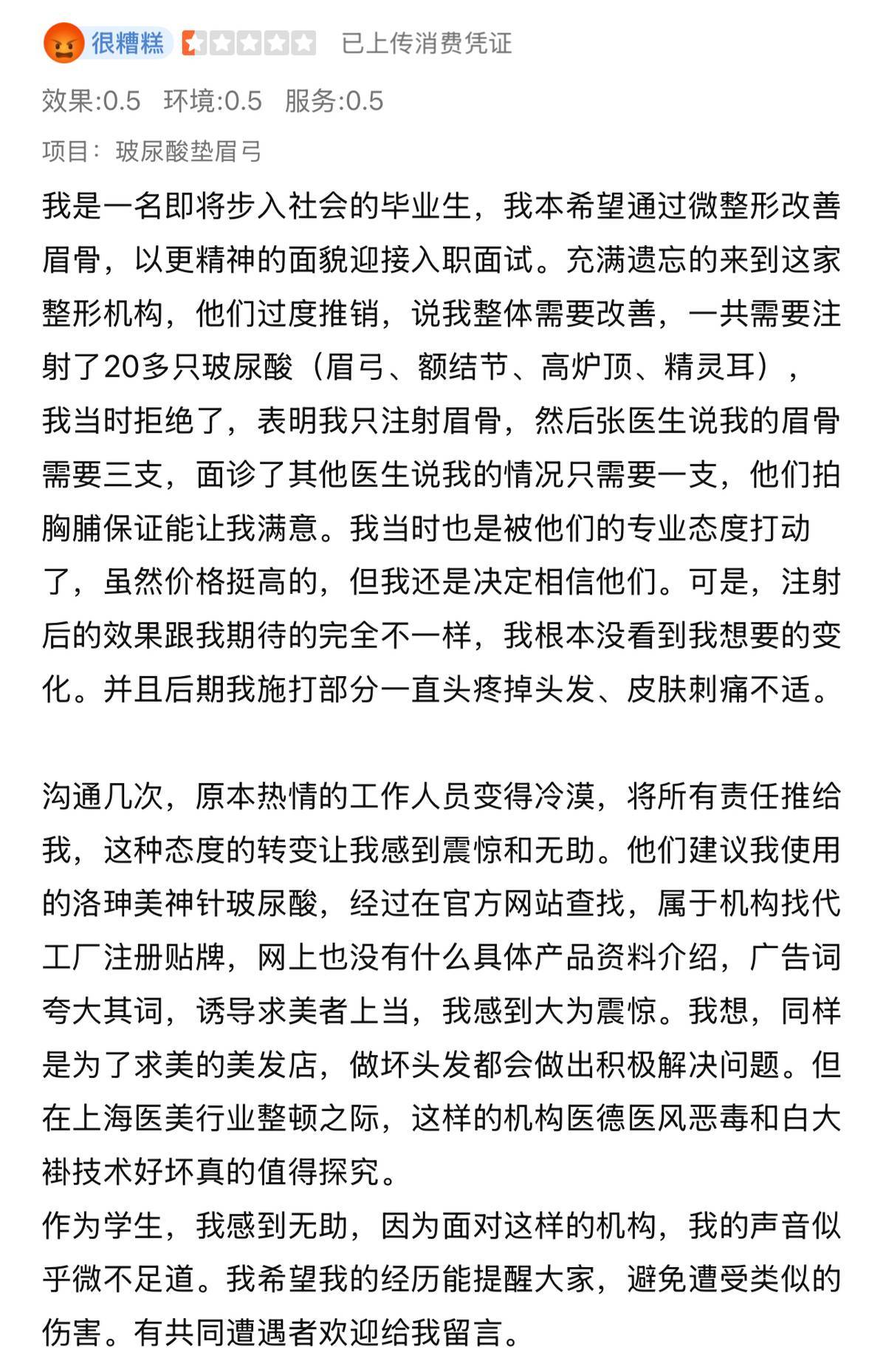 该消费者想,同样是为求美的美发店,做坏头发都会做出积极解决问题。但在上海医美行业整顿之际,这样的机构医德医风恶毒和白大褂技术好坏真的值得探究。作为学生,该消费者感到无助,因为面对这样的机构,她们的声音似乎微不足道。该消费者希望他们的经历能提醒大家,避免遭受类似的伤害。