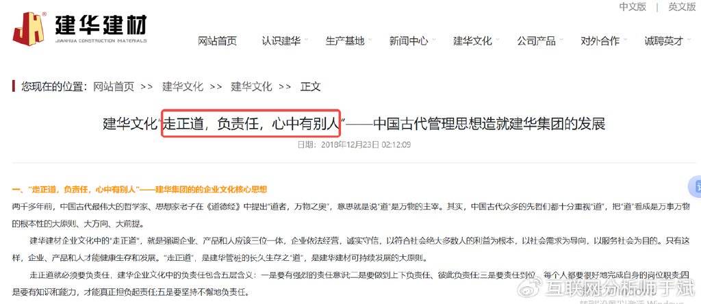 建华建材自称国家住宅产业化基地、制造业单项冠军示范企业,自创立之日起,始终坚持“走正道、负责任、心中有别人”的企业文化,强调企业、产品和人应该三位一体,企业依法经营,诚实守信,以符合社会绝大多数人的利益为根本,以社会需求为导向,以服务社会为目的。