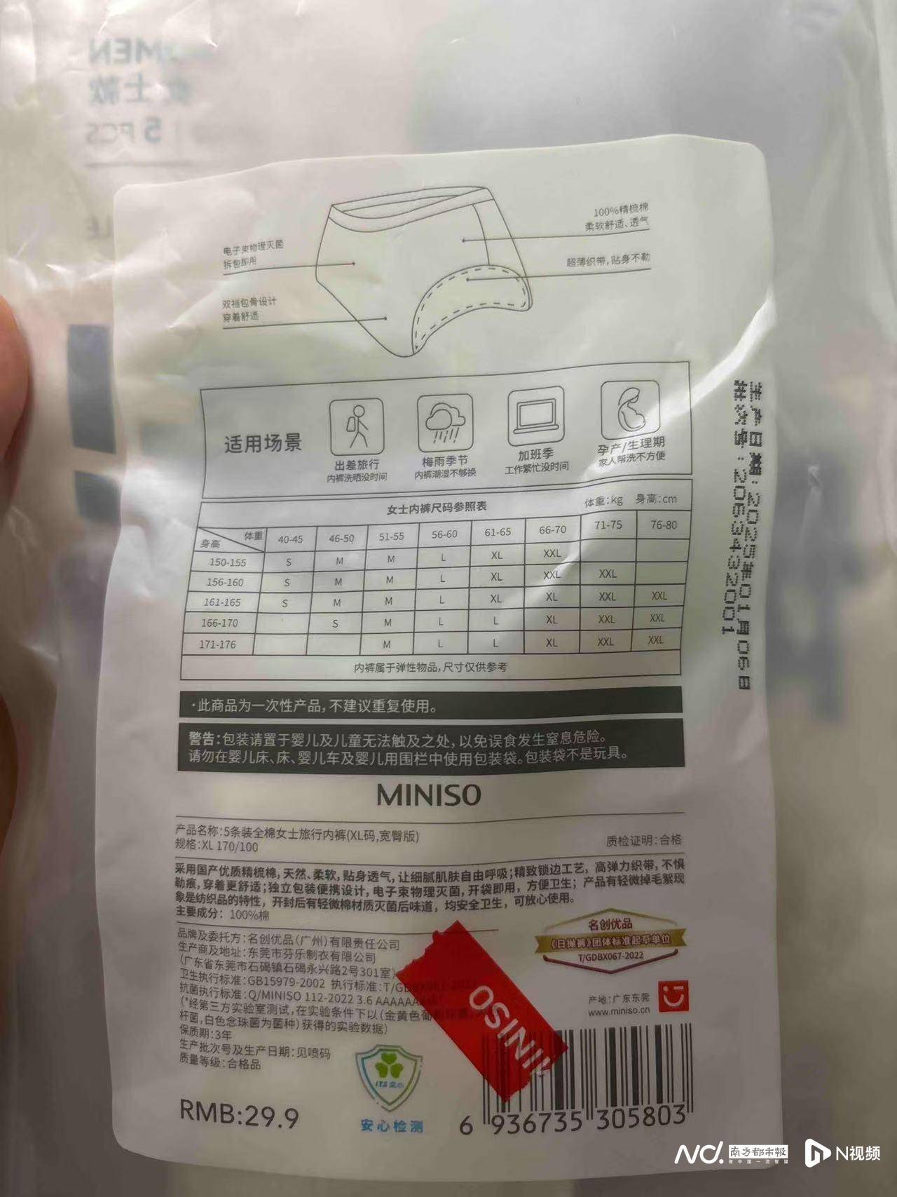 消费者投诉名创优品一次性内裤有不明污渍 回应称重视该反馈