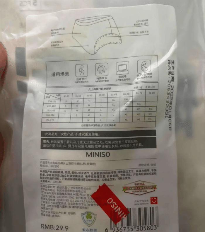 名创优品一次性内裤遭遇明显污渍 工厂称可能接触设备润滑油