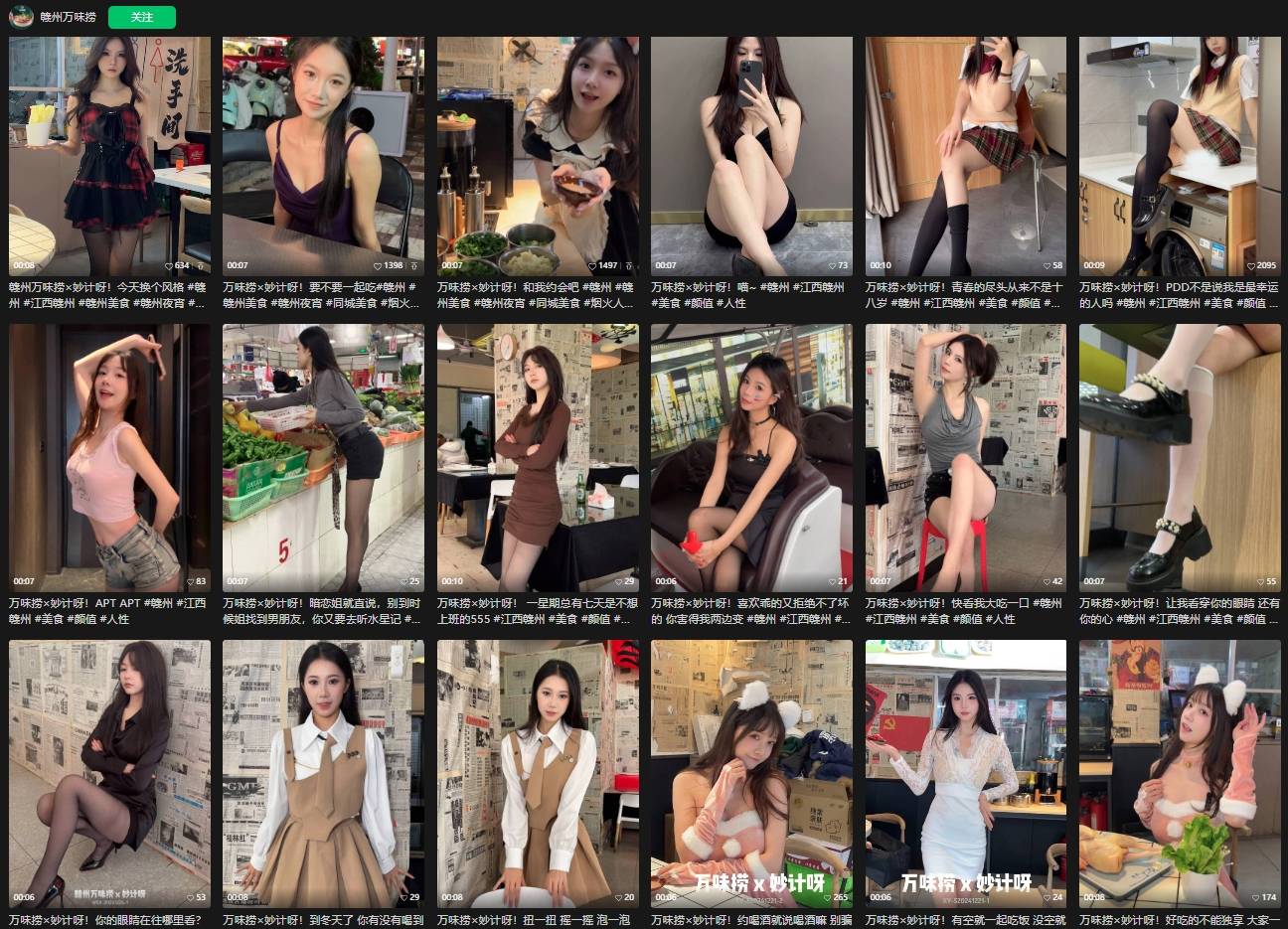 近日,有网友发现赣州万味捞鸡煲店的社媒主页,发布的177条视频全是“擦边”内容,和菜品毫无关系。视频里不少模特穿着暴露、搔首弄姿,甚至把脚放到客人吃饭的餐桌上,还有网友称去店里吃饭的时候,现场也在拍摄擦边视频,严重影响用餐体验。
