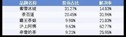 报告显示,蜜雪冰城以31.27%的投诉占比位列品牌投诉榜首,茶百道占比20.45%、霸王茶姬占比9.98%紧随其后。值得注意的是,主打性价比的蜜雪冰城虽市场份额庞大,但其投诉解决率仅为14.83%,远低于沪上阿姨等品牌。