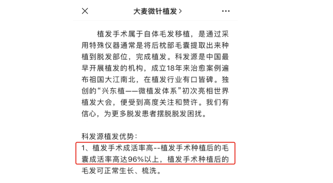 与此同时,大麦植发还涉嫌对其手术效果进行夸大性虚假宣传。