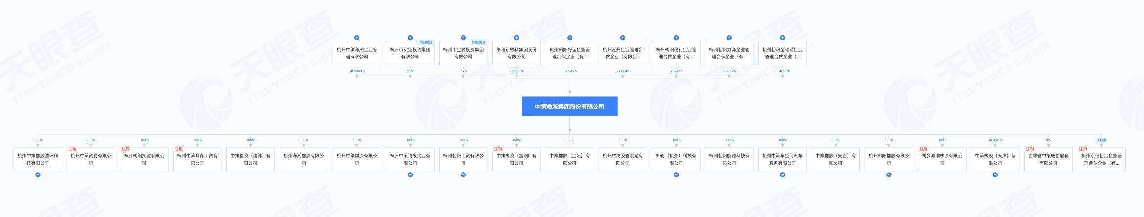 天眼查App信息显示,中策橡胶成立于1992年6月,前身为杭州中策橡胶(股份)有限公司。目前,该公司的注册资本约为7.87亿元,法定代表人为沈金荣,主要股东包括中策海潮、杭实集团、杭州金投、彤程新材(SH:603650)等。