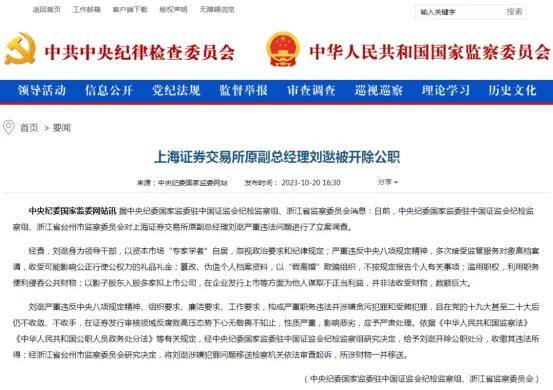 2023年4月21日,中央纪委国家监委网站发布消息,刘逖因涉嫌严重职务违法接受调查。仅仅半年后,刘逖便被开除公职,其通过“影子股东”身份入股多家拟上市公司,并在企业上市审核过程中利用职务之便为他人谋取不当利益,非法收受巨额财物。