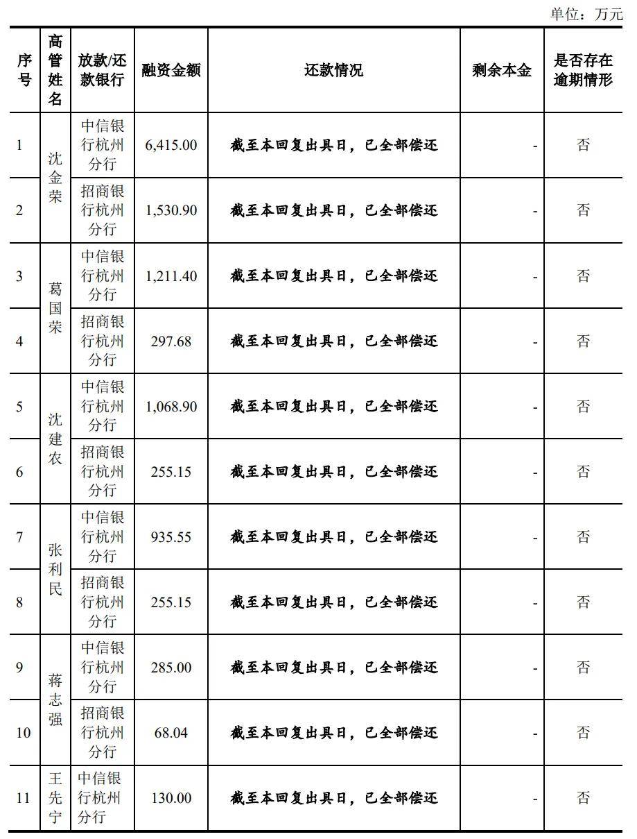 其中,沈金荣借款7,945.90万元,葛国荣借款1,509.08万元,其他高管也分别借款数百万至上千万元不等。尽管这些借款已于2024年3月全部清偿,但这种操作背后的动机和潜在风险依然值得深究。