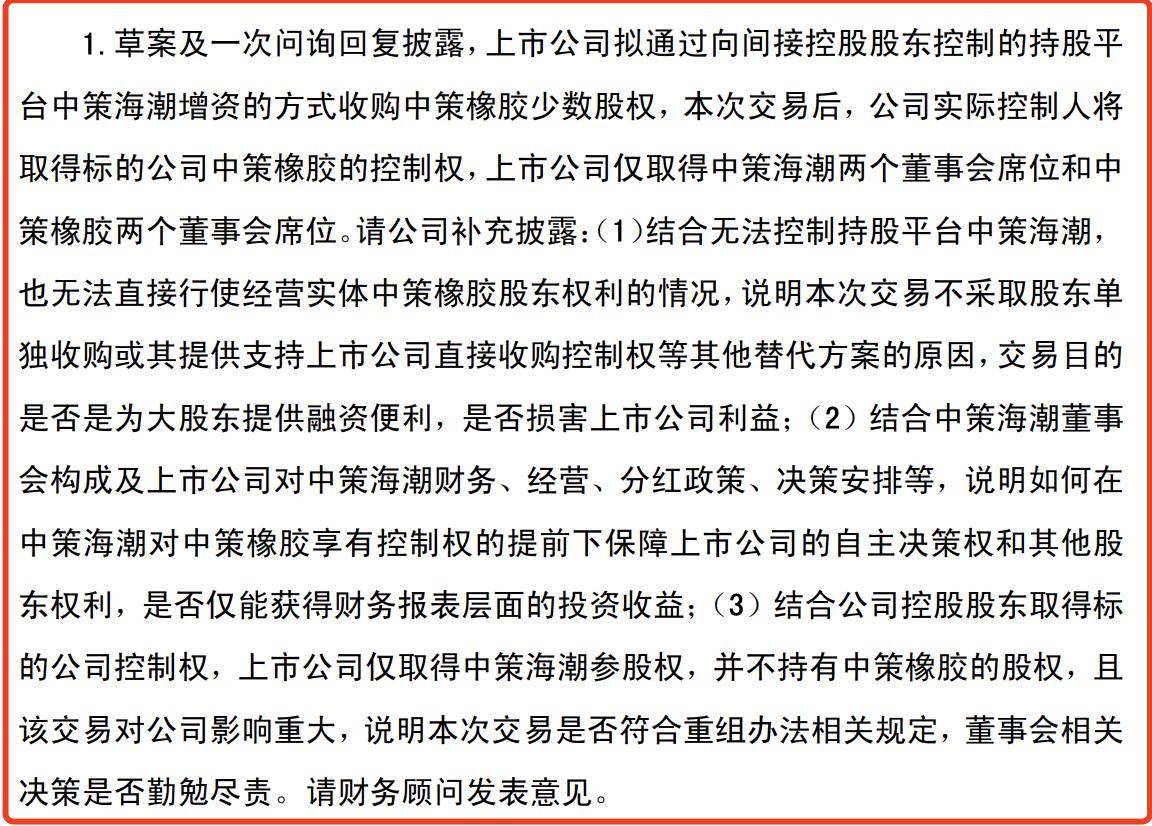 此次股权转让,杭叉集团实际控制人仇建平将取得了标的公司中策橡胶的控制权。对此,上海证券交易所也曾在2019年对杭叉集团下发了问询函,要求其说明通过持股平台中策海潮收购标的公司少数股权的原因和必要性等。