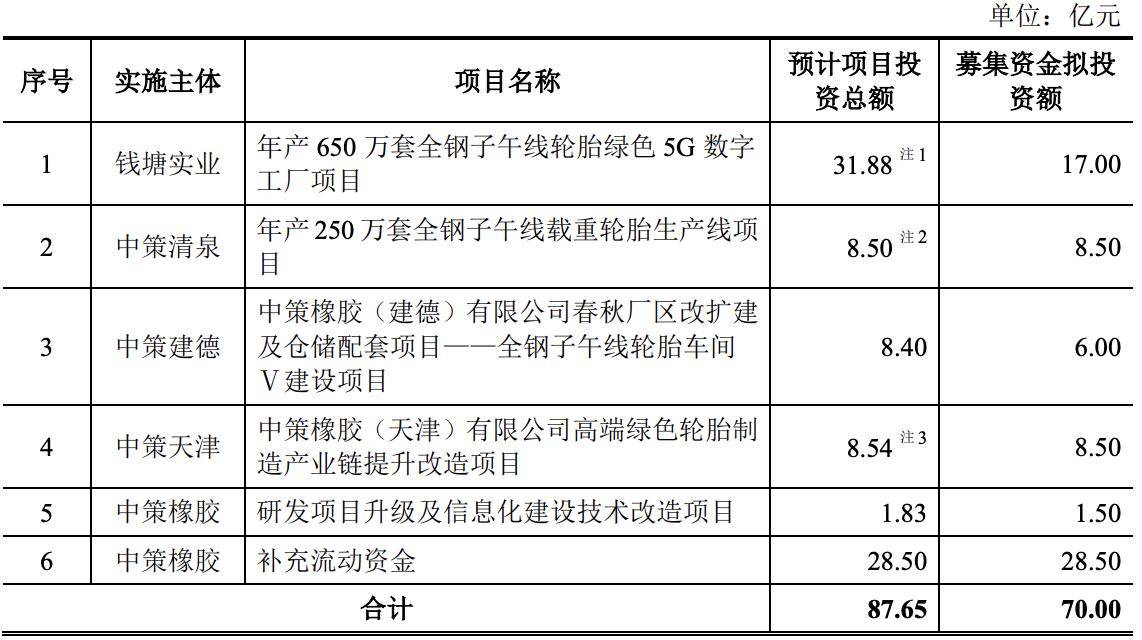 直至2023年1月,中策橡胶预披露招股书,准备在上海证券交易所主板上市,原计划募资70亿元,将用于年产650万套全钢子午线轮胎绿色5G数字工厂项目、年产250万套全钢子午线载重轮胎生产线项目等。