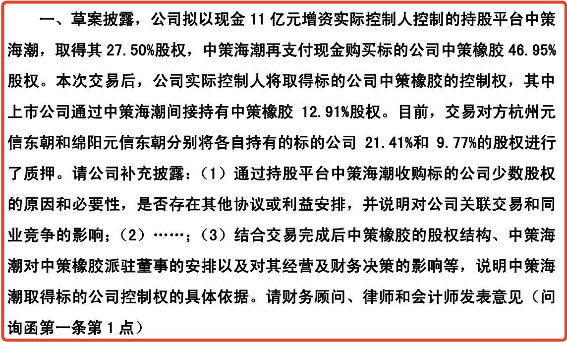 2019年10月,各方签订了协议,约定中策海潮受让出让方合计持有的中策有限(即“中策橡胶”)46.9489%股权,交易对价约为57.98亿元,估值123.5亿元。同期,杭州元信东朝10.1647%的股权转让给上海彤中。