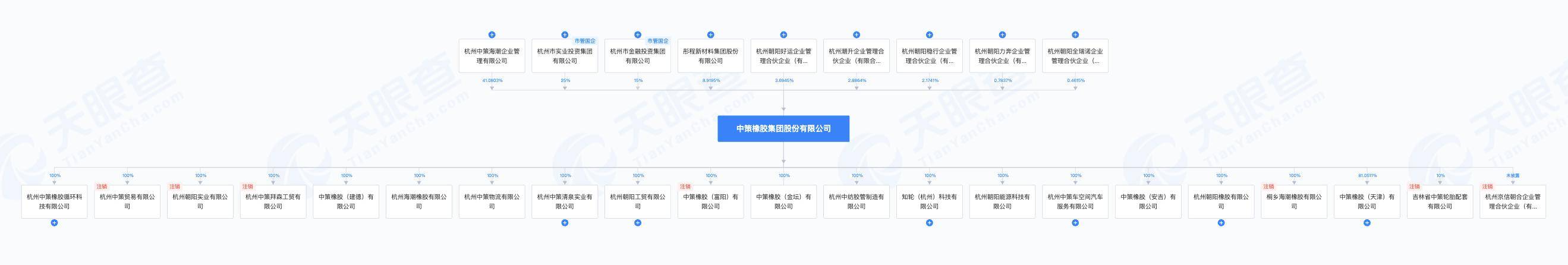 天眼查App信息显示,中策橡胶成立于1992年6月,前身为杭州中策橡胶(股份)有限公司。目前,该公司的注册资本约为7.87亿元,法定代表人为沈金荣,主要股东包括中策海潮、杭实集团、杭州金投、彤程新材(SH:603650)等。