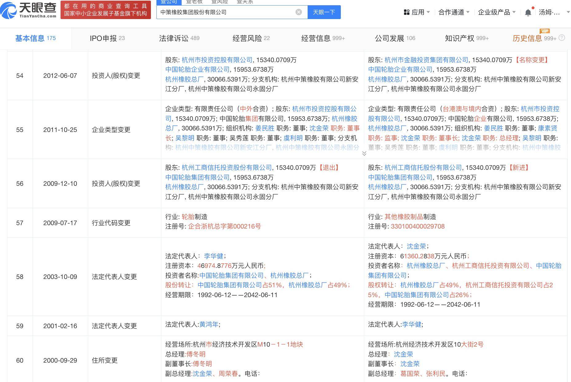 而据天眼查App信息,中策橡胶于2003年10月发生工商变更。变更完成后,杭州橡胶总厂持股49%、杭州工商信托投资有限公司(由杭州金投控股)、中国轮胎集团有限公司(注:已不可查)分别持股25%、26%。