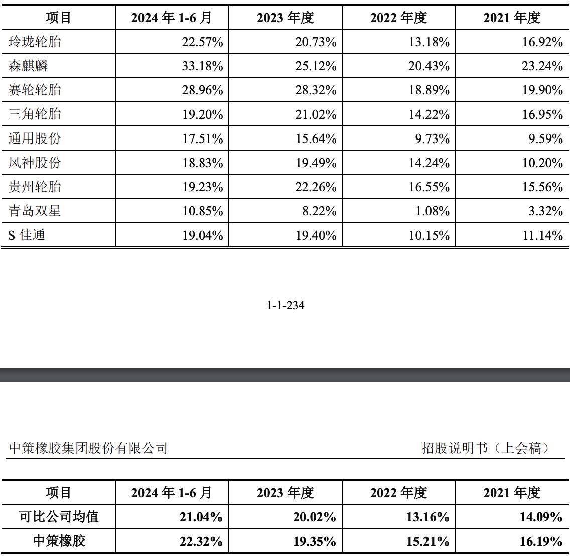 其中,2022年的毛利率略有下降,2023年度及2024年1-6月(即上半年)有所提高。中策橡胶在招股书中表示,2023年度及2024年上半年,受到美元汇率升值、主要原材料价格波动、需求回暖等多重因素影响,发行人经营业绩大幅上涨。