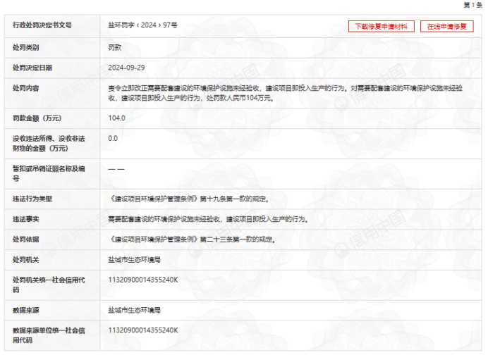 至于东台双胞胎畜牧有限公司就更厉害了。去年9月份该公司被盐城市环保部门查处发现,该公司需要配套建设的环境保护设施未经验收,建设项目就投入了生产,该违法行为被责令改正并处以104万元的巨额罚款。